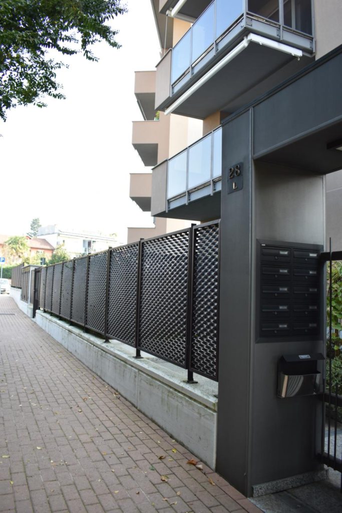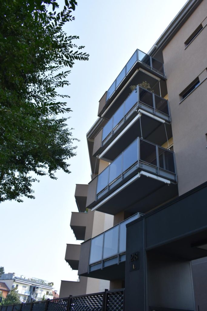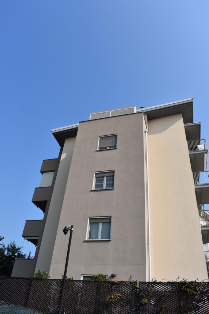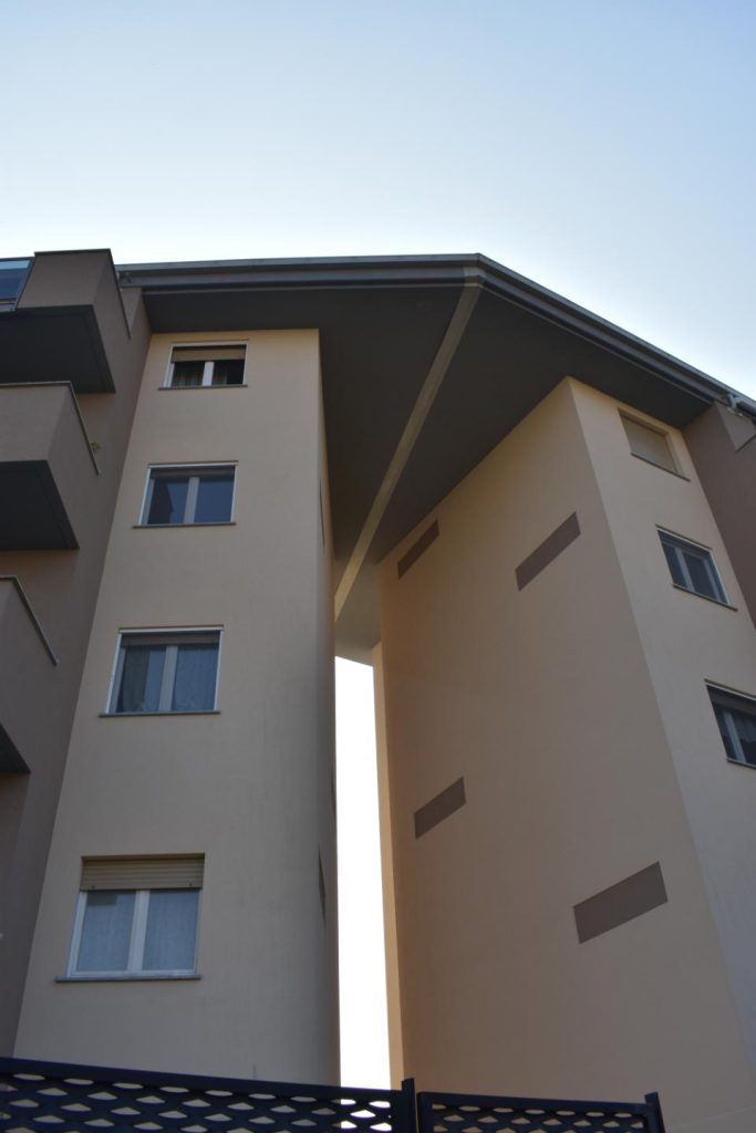 Il progetto prevede la costruzione di un fabbricato plurifamiliare a destinazione residenziale, che si eleva per quattro piani fuori terra oltre l’attico con soffitti a spiovente a vista con altezza minima di 2,70 m e massima di 3.70 m.